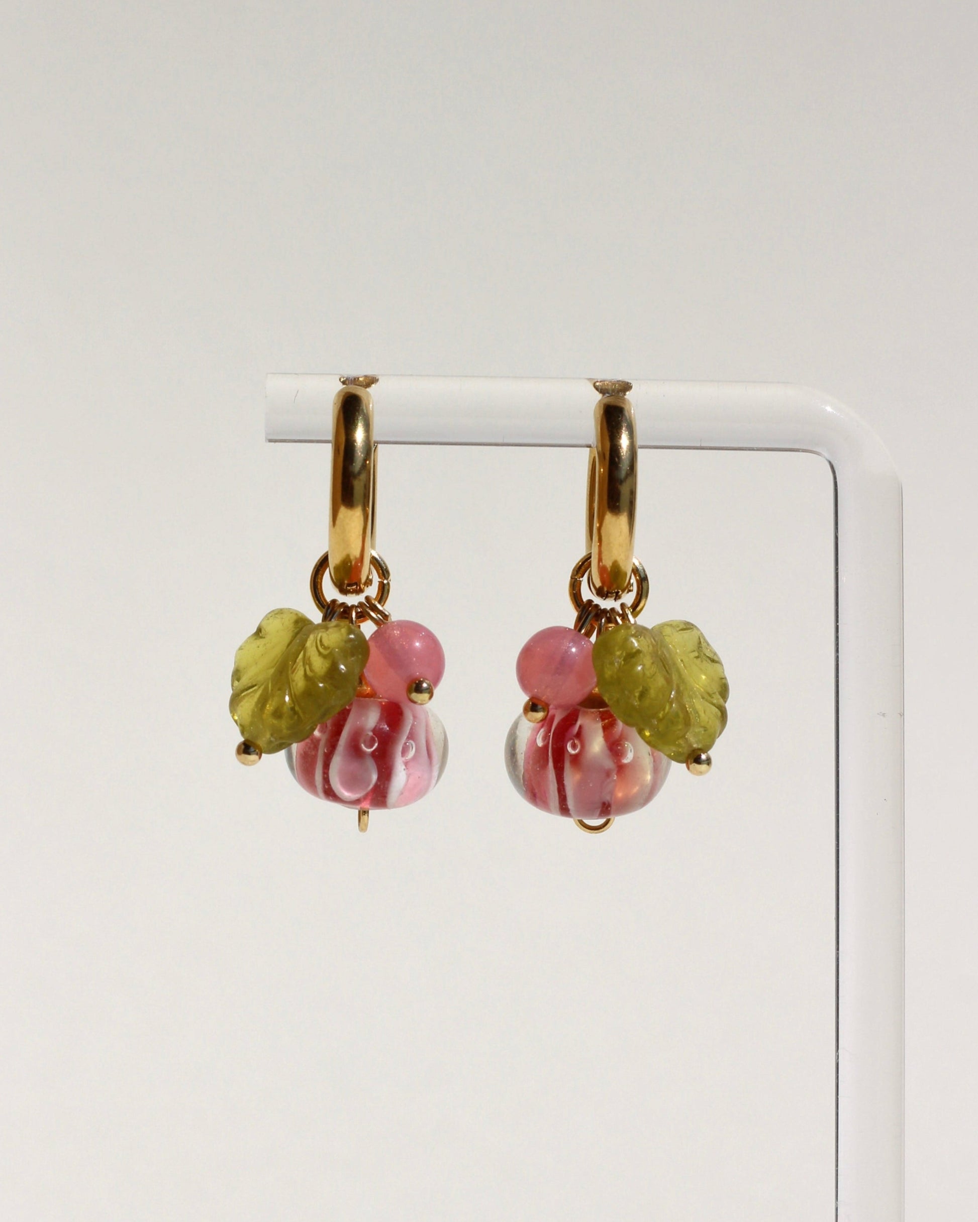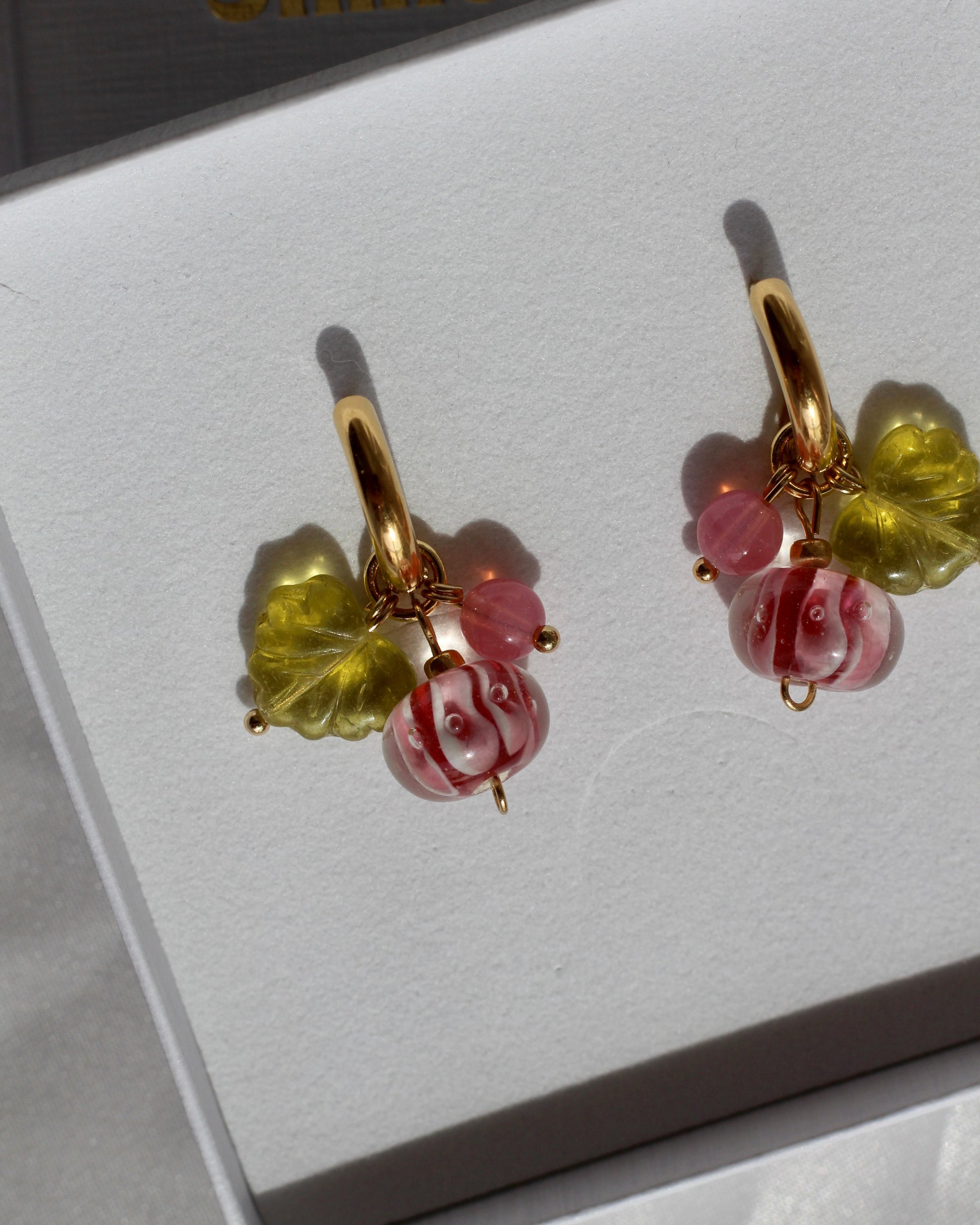 Karviaiset saivat inspiraationsa Äidin puutarhasta, jossa nämä marjat kasvavat. Karviaisten punainen lasihelmi on valmistettu ja muotoiltu käsin. Valikoimasta löydät sekä punaiset että vihreät karviaiset.