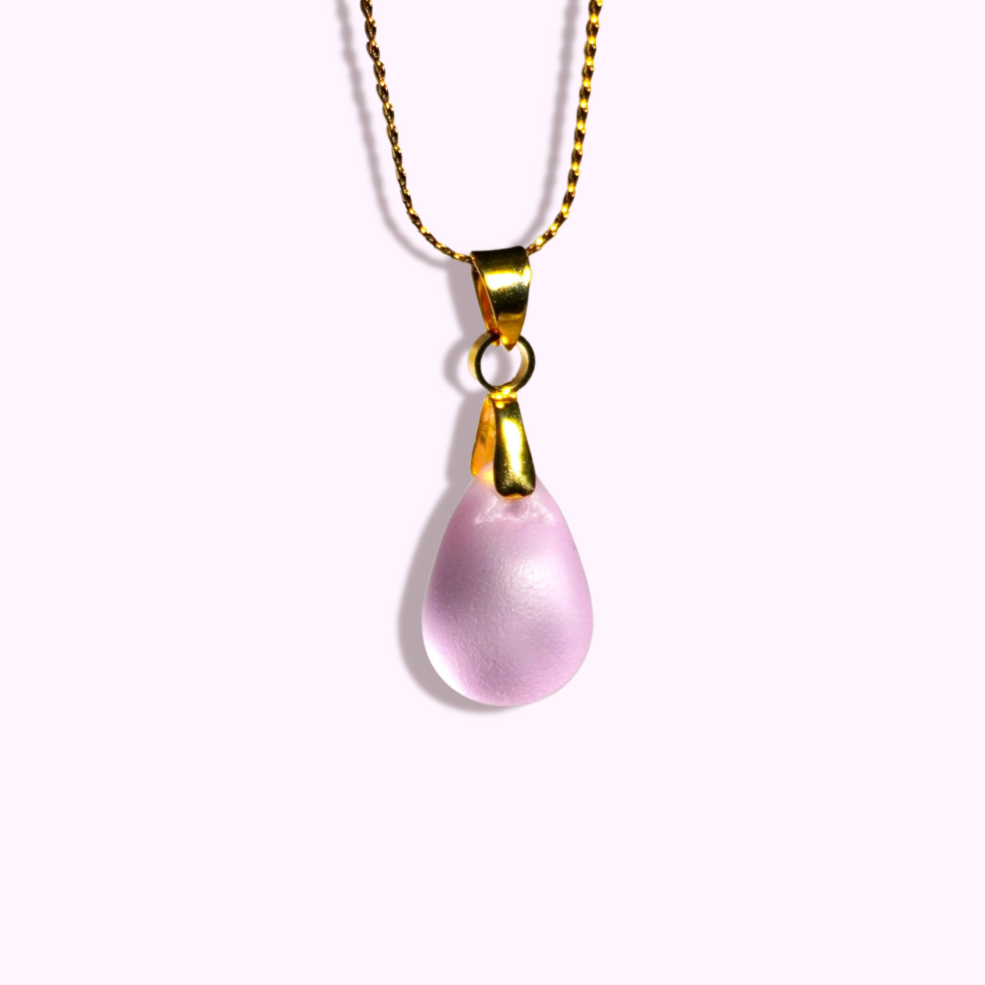 Ruusu-kaulakoru on siro mutta näyttävä, ja siinä hohtaa kaunis lasihelmi.