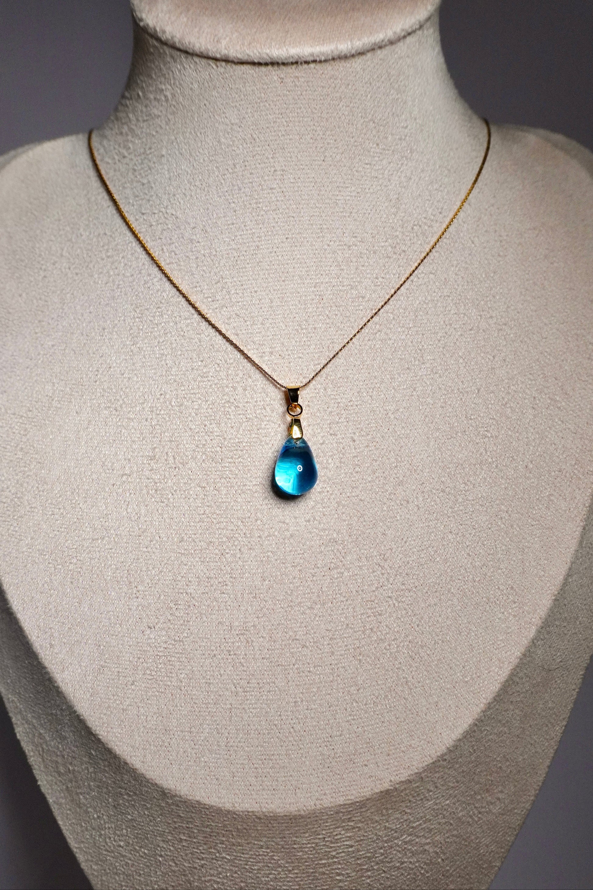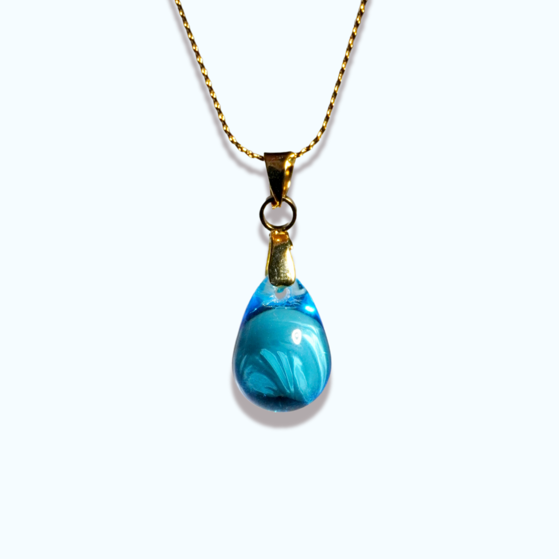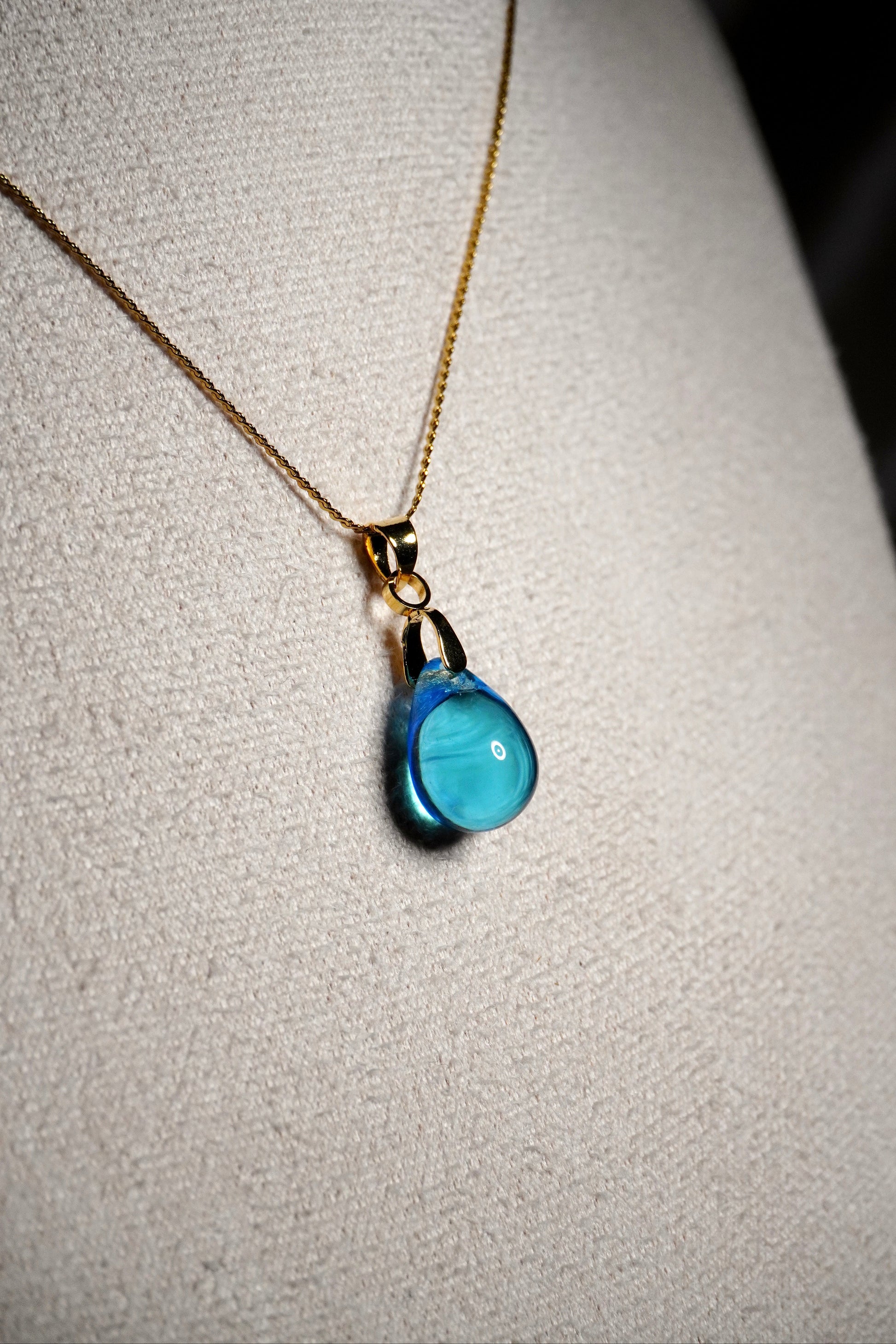 Puro-kaulakoru on siro mutta näyttävä, ja siinä hohtaa kaunis lasihelmi.