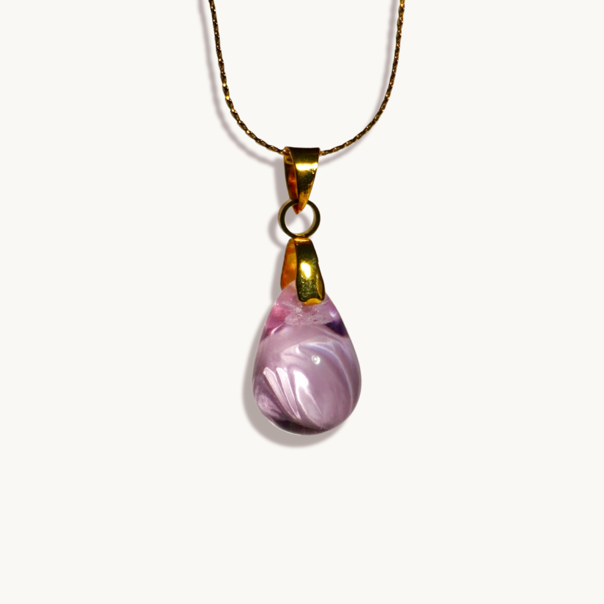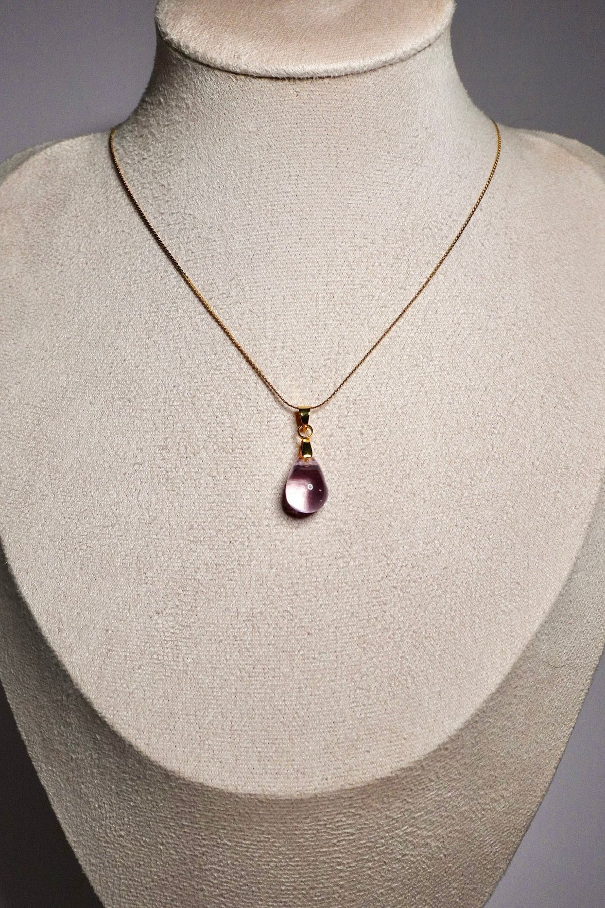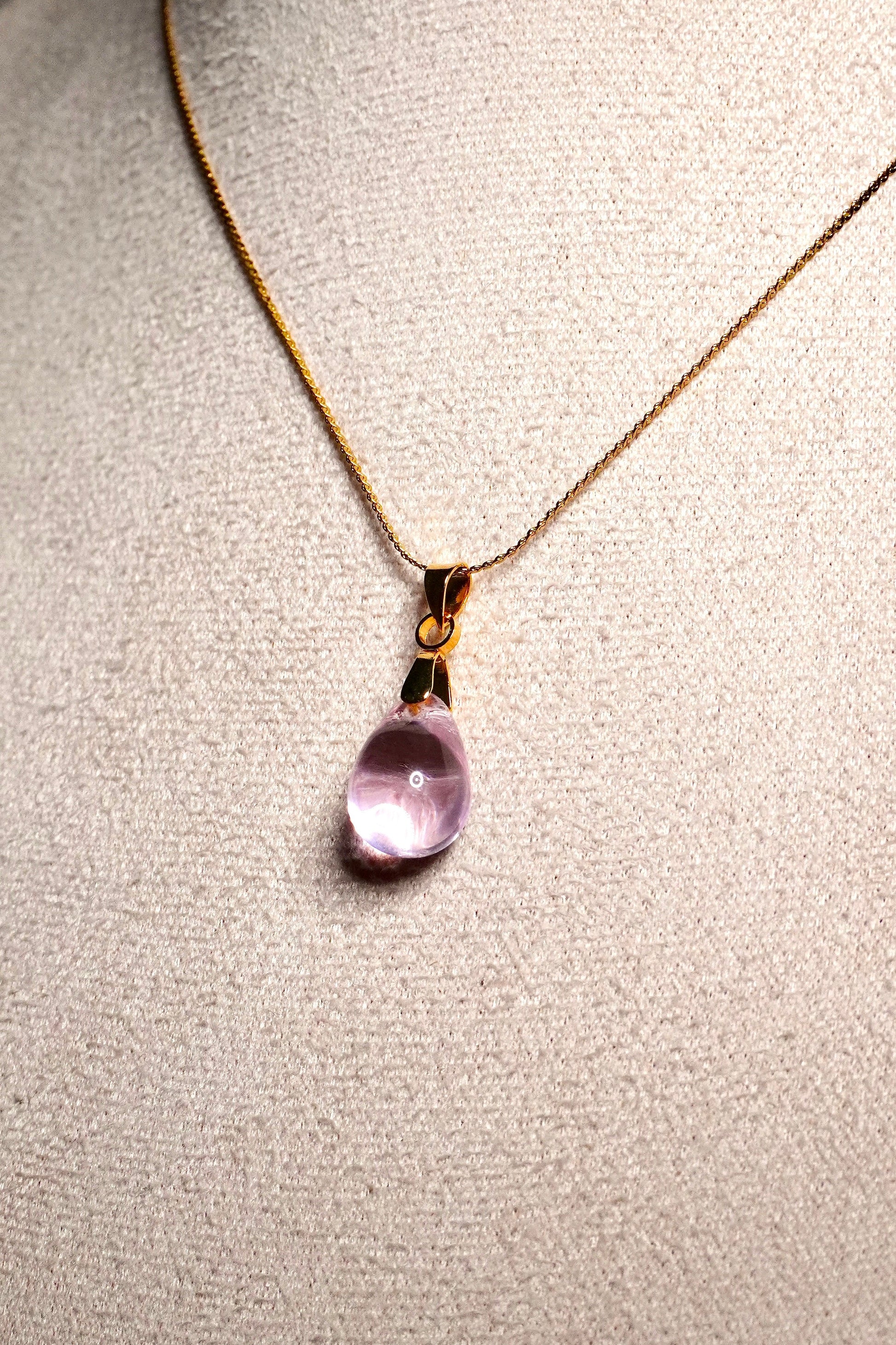 Ruusu-kaulakoru on siro mutta näyttävä, ja siinä hohtaa kaunis lasihelmi.